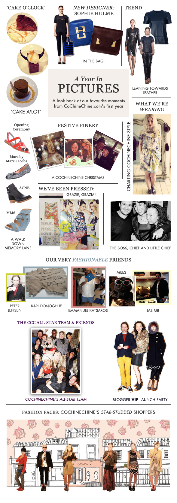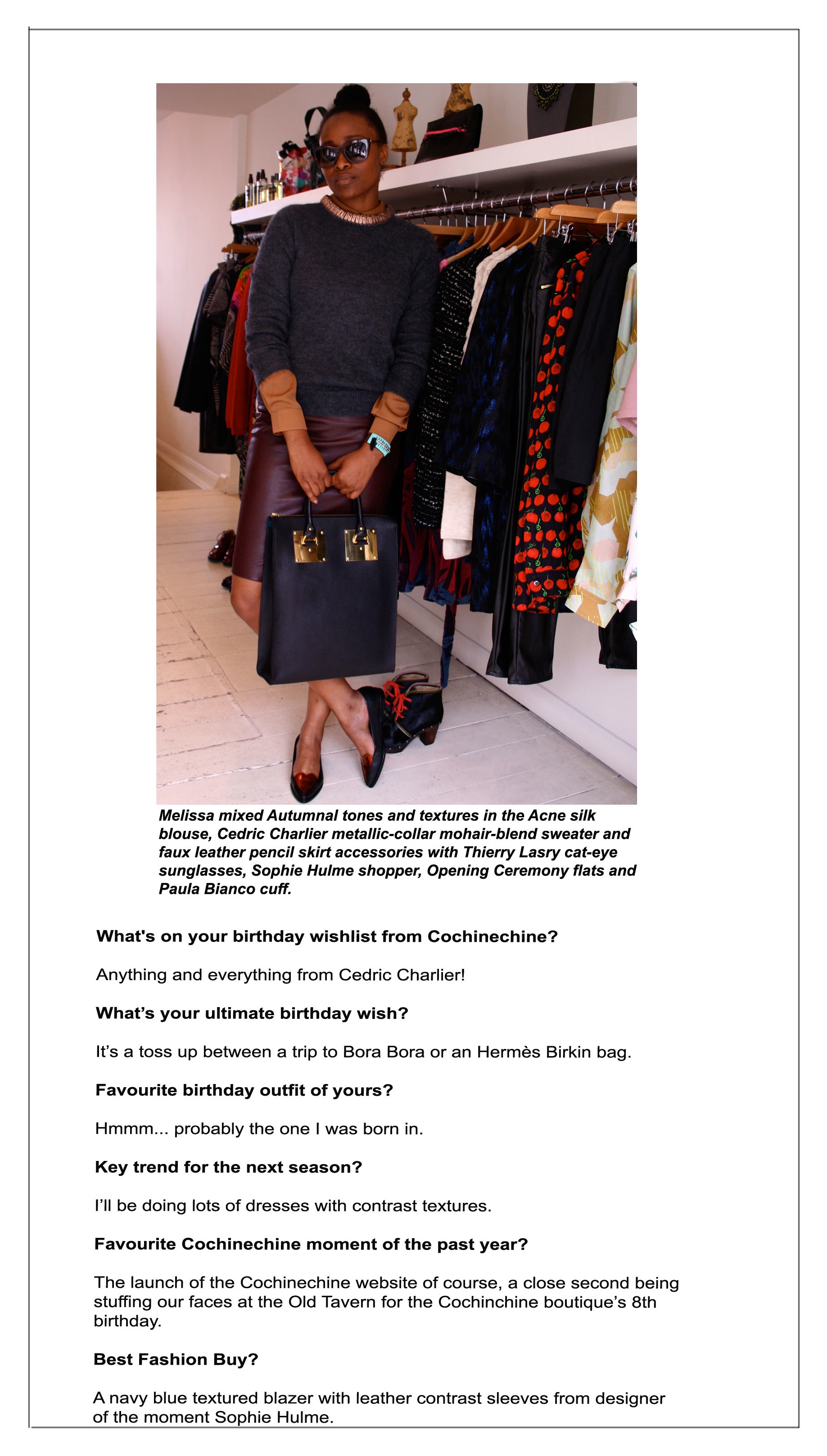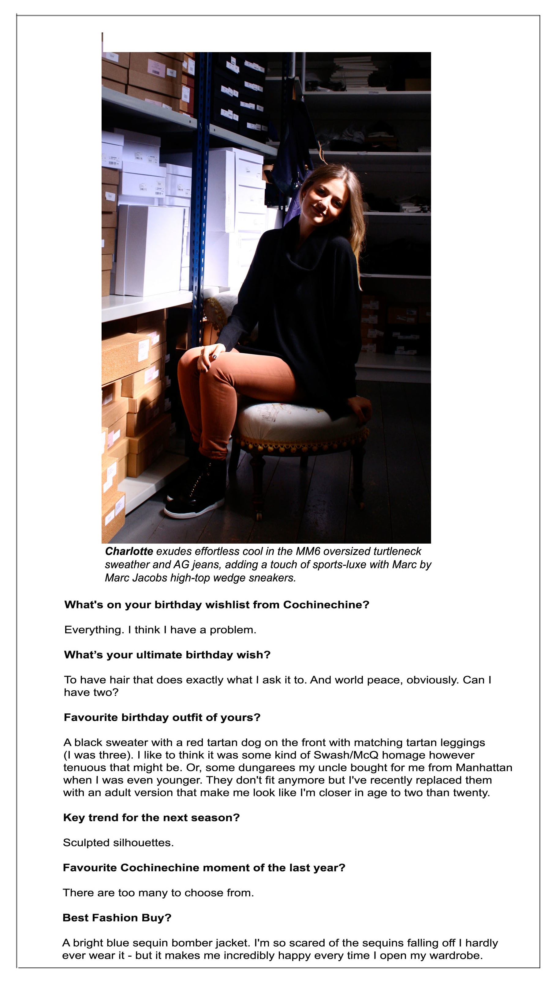 From top left, clockwise; McQ Alexander McQueen's Hummingbird-print stretch jersey dress; Lizzie Fortunato's EXCLUSIVE Felix necklace; Cedric Charlier's asymmetric zip moto jacket; Raquel Allegra's tie-dye shredded jersey top; Paula Bianco's Star Raven earrings; MM6 by Maison Martin Margiela's layered leather wedge boots; MM6 by Maison Martin Margiela's oversized wool turtleneck sweater; McQ Alexander McQueen's razor wrap bracelet; SWASH's Black Onyx Snaffle printed leggings; MM6 by Maison Martin Margiela's suede triangle tote